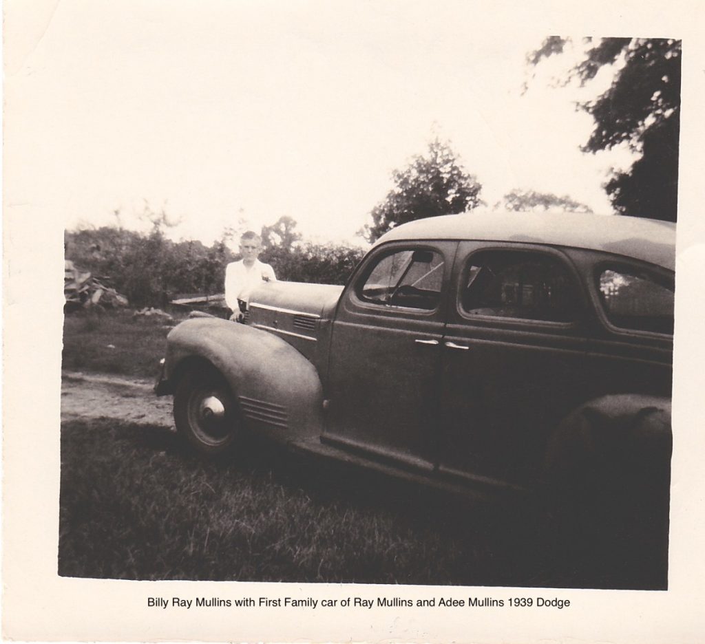 Billy Ray Mullins spoke of their first car. We purchased it from a Baptist Preacher and it was worn out. We were happy because we did not have a car. I remember that the speedometer was green up tp 30 Miles per hour, Yellow up to 50 MPH then red after 50.
