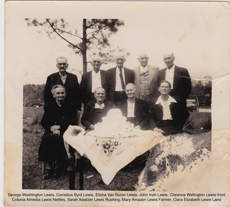 George Washington Lewis family Lto R Elisha Holmes Lewis, George Washington Lewis, George Harrison Lewis, James Madison Lewis, Mary Jane Coward Lewis, Mary Martha Lewis, Adee Almeda Lewis, Julia Joceylene Lewis, Sarah Isabell Lewis, Iva Idell Lewis This was the Home they had before they moved into the Building that was used for the Ramah School after it was consolidated into the McCall schoolAdee Almeda Lewis married Ray Mullins from McCall Creek, MSAdee Almeda Lewis and Ray Mullins Harrison Lewis and Cleo Rushing LewisBarney LewisBarney LewisLamarion Lewis Anderson and Martha Nell Arnold OwensLewis Family Reunion in Franklin County, MSLamarion Lewis AndersonHolmes LewisLewis Reunion in Franklin County, MSLukie Ezilee Allred LewisAdee Almeda Lewis MullinsLewis Family Get Together in Franklin County, MSAdee Almeda Lewis MullinsA photo of a group at George Washington Lewis sawmill L to R 1-William B Mathis 2-Cletus Keene, 3 unknown 4-Ray Mullins 5. George Washington Lewis sitting 1. George Harrison Lewis 2. Decatur Ratcliff 3. Elisha Holmes Lewis not sure but Decatur Ratcliff listed on photo may be Floyd Decatur RatcliffThis was made in March of 1962 at Mary Nettles Lewis birthday dinner. Seated: Mae Pate Nettles, widow of Jim Nettles the brother of Mary Nettles Lewis, Clara Lewis Laird, Mary Nettles Lewis, Colonia Lewis Nettles. Back Row: Cornelious Byrd Lewis, E. V. “Bud” Lewis, his wife Vergie Ballard Lewis, John Irvin Lewis and his wife Ethel Bonds Lewis, and Mary Lewis Farmer. Aunt Colonia’s husband was also a brother to Mary Nettles Lewis.